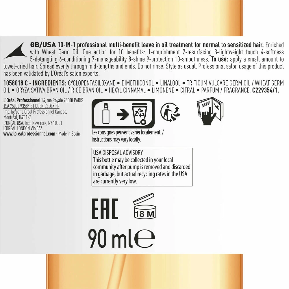 CYCLOPENTASILOXANE • DIMETHICONOL • LINALOOL • TRITICUM VULGARE GERM OIL / WHEAT GERM OIL • ORYZA SATIVA BRAN OIL / RICE BRAN OIL • HEXYL CINNAMAL • LIMONENE • CITRAL • PARFUM / FRAGRANCE