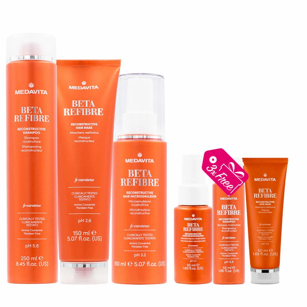 Medavita Lunghezze Beta Refibre Reconstructive Shampoo 250ml Mask 150ml Microemulsion 150ml + Travel Size En Cadeau