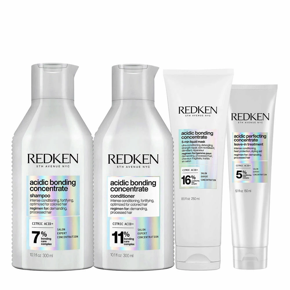 Redken Acidic Bonding Concentrate Shampoo 300ml Conditioner 300ml 5-Min Liquid Mask 250ml Leave-in Treatment 150ml